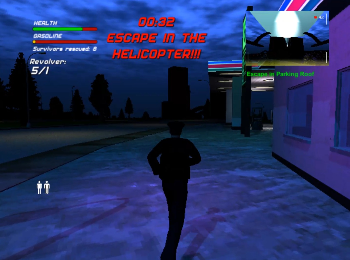 General Marshall has ordered the city destroyed. Rescue survivors and bring them back to the police station to prove it can still be saved. The more lives you rescue, the higher your score. Good luck, Officer.